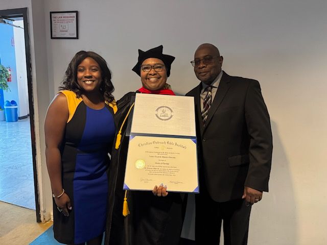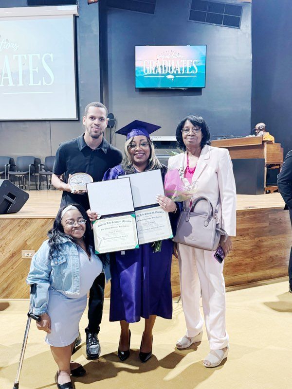 Chancellor Joanie Green, Christian Outreach Bible College, Fayetteville, NC, awarded them their degrees, and Dr. Odessa McNeill and the Faculty of Eastern Bible Institute and all of the extension schools rejoiced with all of them. They are Tiffany Morrast, Lance Leeks, Lossie Whitaker Thornton, Summa Cum Laude, Tawana Williams and Hattie Ross.