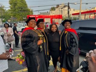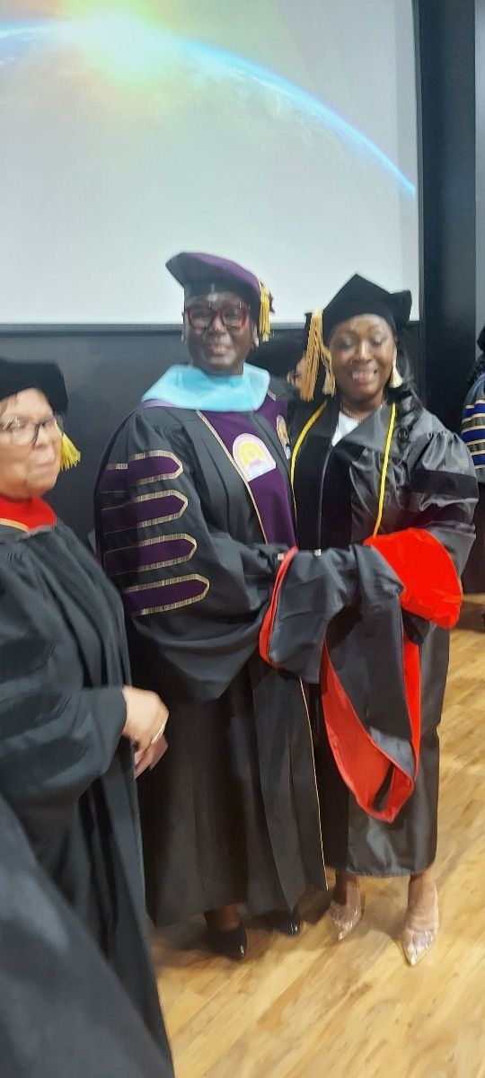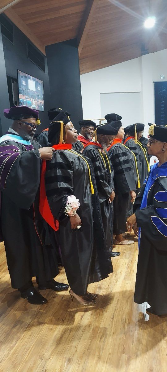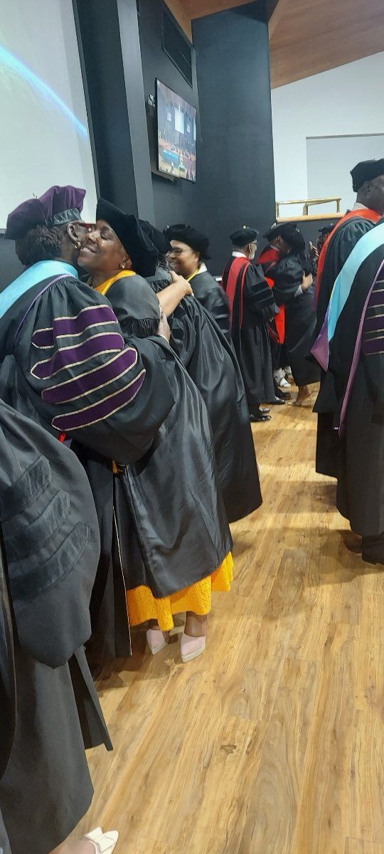 Graduation is always exciting but this year we had five Doctoral Students to graduate. After two years of classroom studies, they had to write and defend a Dissertation. It was challenging but they got it done.